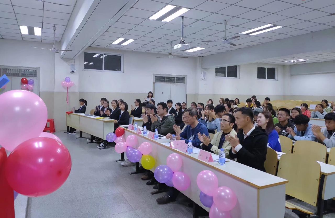 第八届思政之音文化节闭幕式暨寝室文化评比大赛在12教104顺利举行。学院党委书记吴智勇,党委副书记马小佼,班主任周涛、邓亚中、李敏,兼职辅导员董思遥出席比赛并担任评委,大一大二全体学生以及全体团委学生会干部参加比赛。