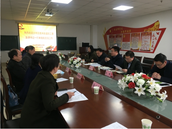 为加强校地合作,3月4日,沙市区胜利街道党工委书记澎湃等一行5人来访麻豆社