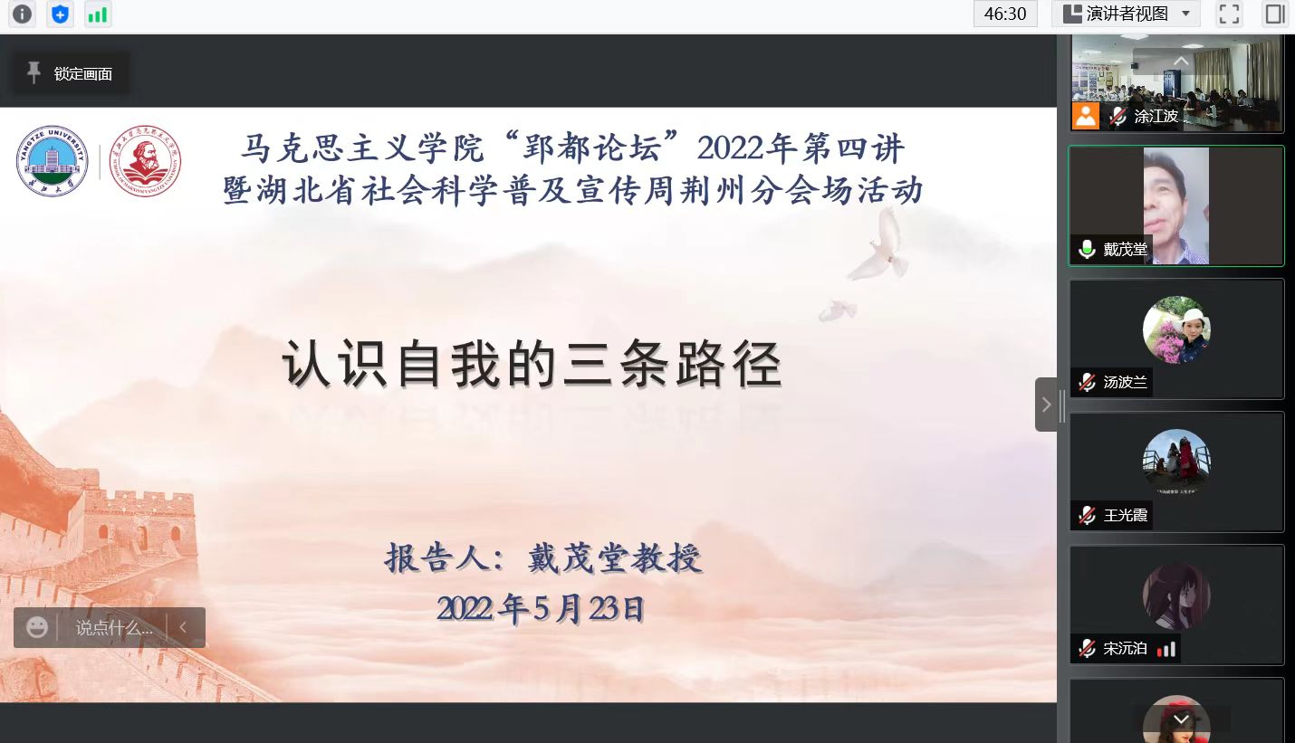 (通讯员 马梦甜)知人者智,知己者明。2022年5月23日上午9点整,北京师范大学哲学国际中心教授戴茂堂为麻豆社