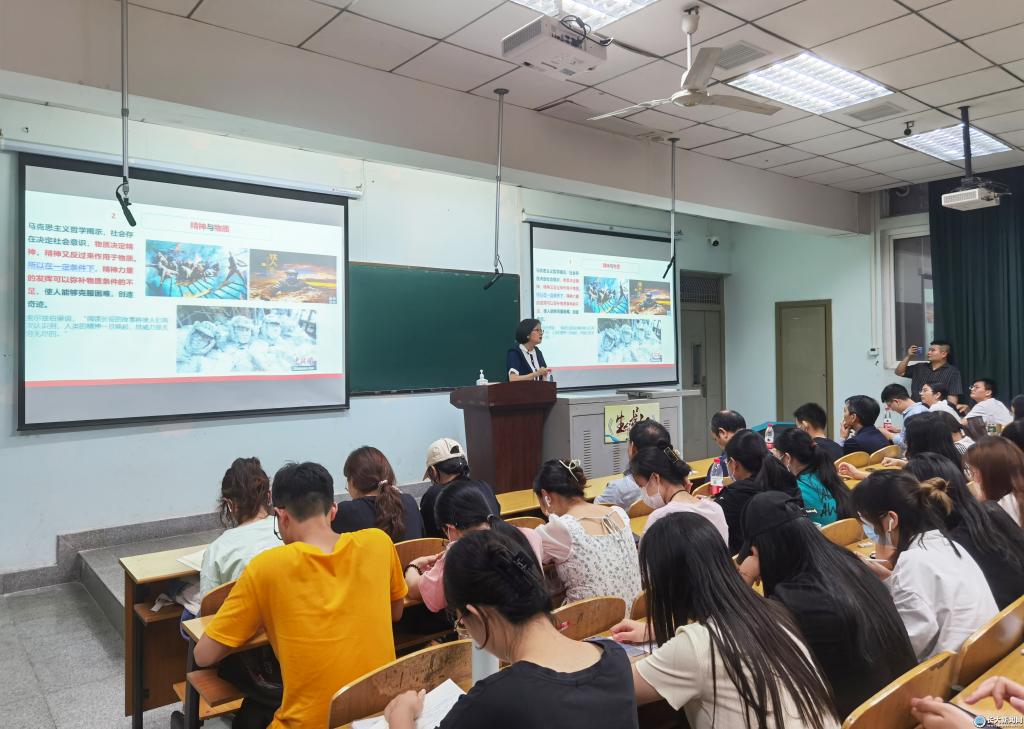 “滚滚长江东逝水,浪花淘尽英雄。”朱业宏通过分享诗词、歌曲向同学们展现了长江精神——广纳百川、润泽万物、推陈出新、百折不回。广纳百川是博大包容,体现在一个“博”字。润泽万物是仁爱利他,体现在一个“爱”字。推陈出新是超越创新,体现在一个“创”字。百折不回是坚韧不拔,体现在一个“韧”字。他勉励同学们树立崇高的理想,努力学习,奉献社会。