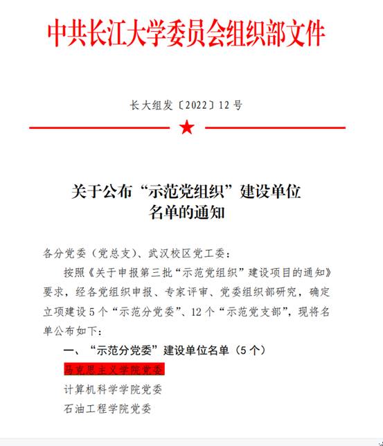 近日,学校组织部下发《关于公布“示范党组织”建设单位名单的通知》,麻豆社 党委申报的“示范分党委”获得建设支持。