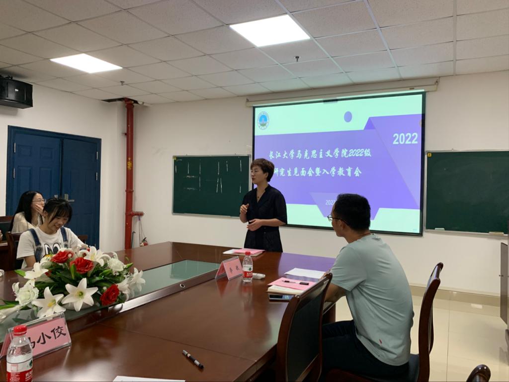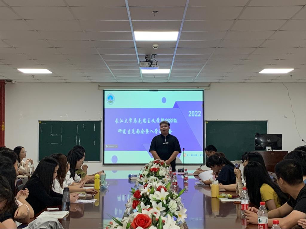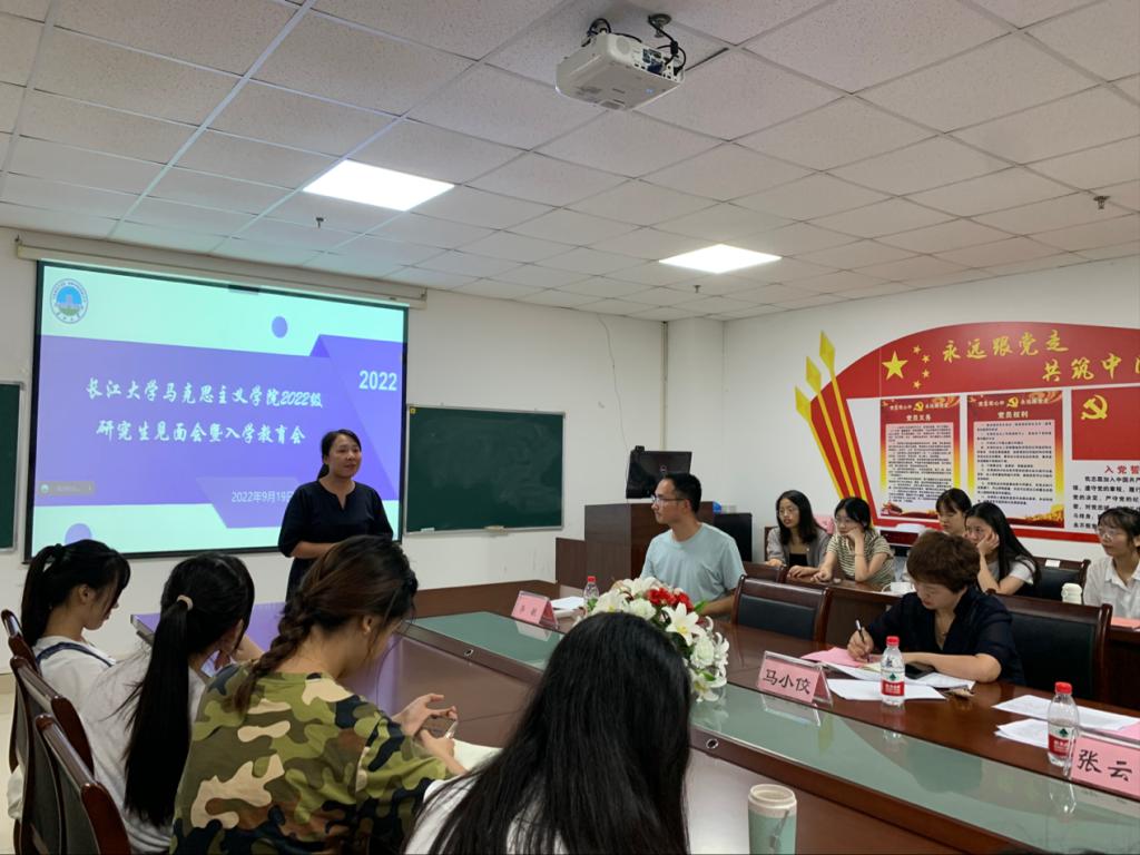 2022级研究生新生见面会暨入学教育专题会于文科楼1104会议室顺利举行。学院党委副书记马小佼、学工办主任张云雾、辅导员李敏以及全体2022级研究生参会。会议由李敏主持。