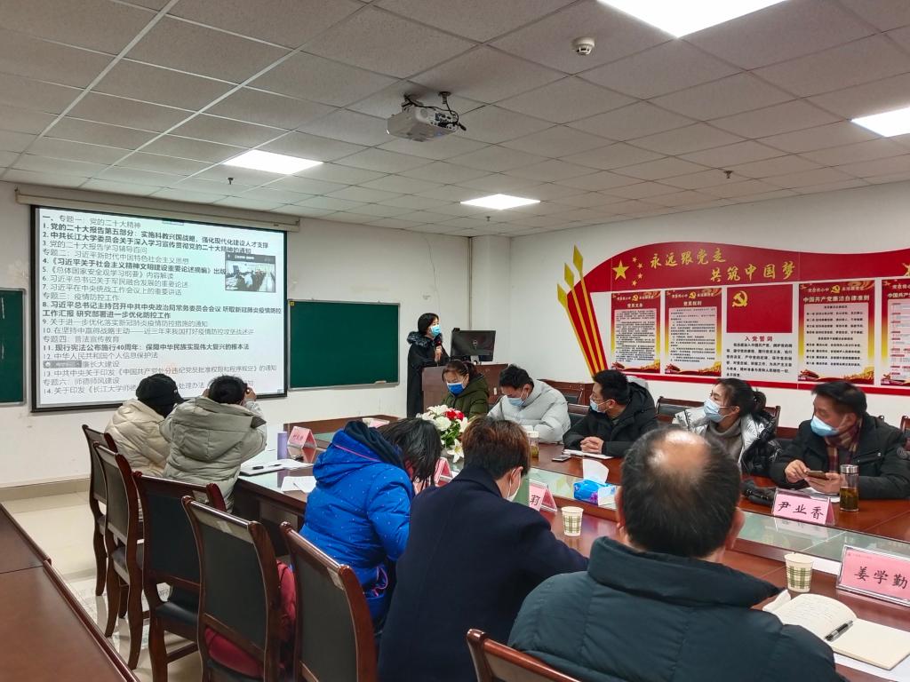 委员会关于深入学习宣传贯彻党的二十大精神的通知》、《习近平关于社会主义精神文明建设重要论述摘编》、《习近平总书记主持召开中共中央政治局常务委员会议 听取新冠肺炎疫情防控工作汇报 研究部署进一步优化防控工作》、《现行宪法公布实施40周年:保障中华民族实现伟大复兴的根本法》等重要文件和会议精神,传达学习了中央经济工作会议和学校中层干部学习贯彻党的二十大精神集中培训会等会议精神,并对学院寒假工作进行了安排部署。