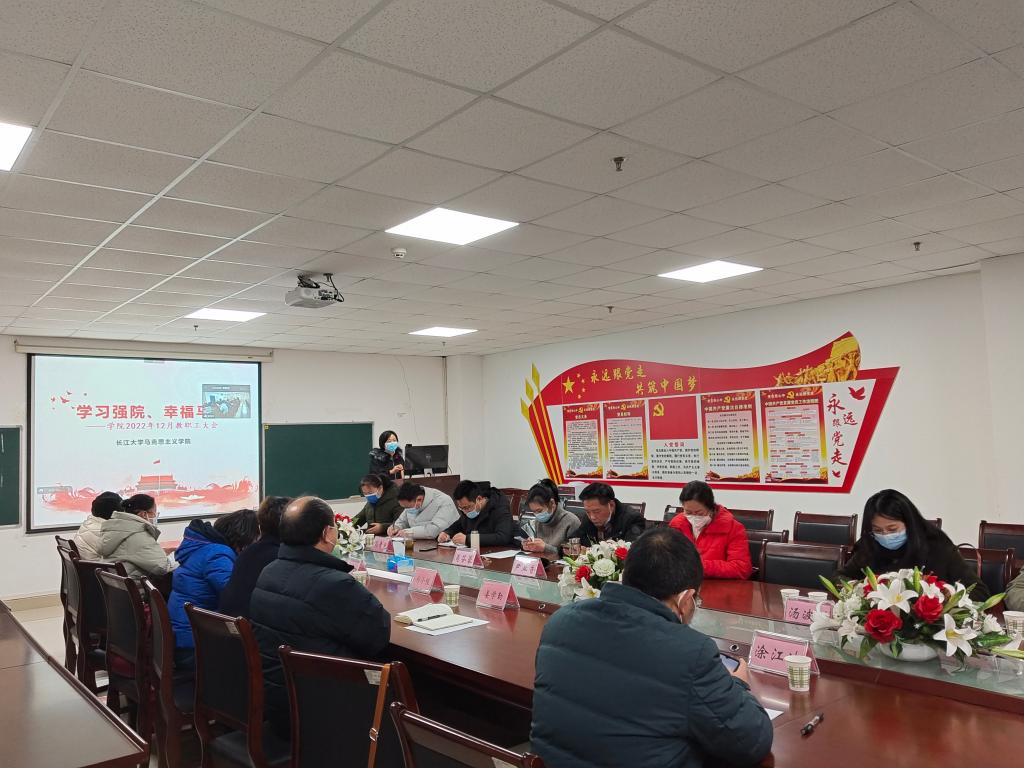 在文科楼1104室召开12月教职工政治理论学习会。会议由院党委书记刘小燕主持。