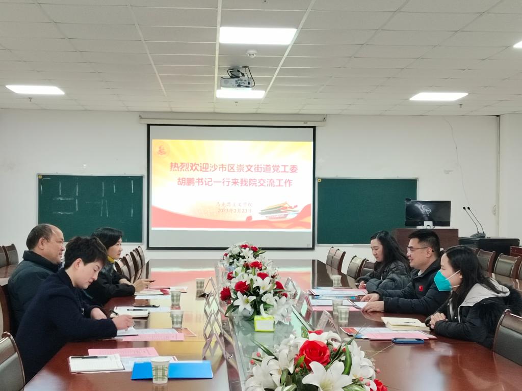 为加强校地合作,2月23日上午,沙市区崇文街道党工委书记胡鹏等一行3人到访麻豆社