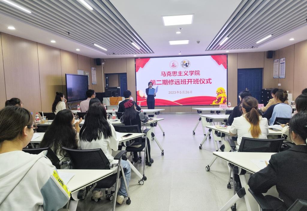于文科楼1008室举行第二期修远班开班仪式。学院党委副书记马小佼、副教授黄晓云、学工办主任张云雾、辅导员李敏和全体学员参加开班仪式。