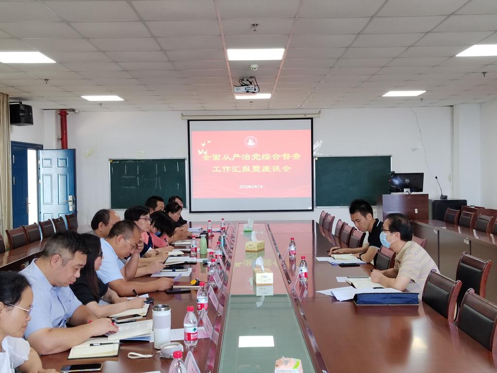 检查指导工作。学院全体班子成员、科室负责人、党支部书记和部分教师代表参加了座谈。