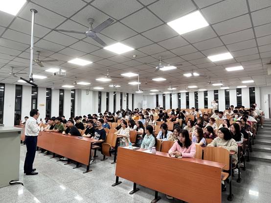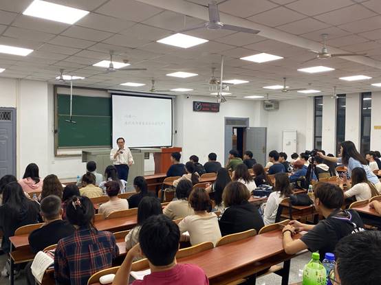 在授课过程中,黄岭峻教授时常向学生们抛出问题,吸引同学们主动思考,充分调动同学们的积极性。学生兴致高涨,课堂气氛活跃。最后,讲座在同学们热烈的掌声和意犹未尽的赞美声中落下帷幕。