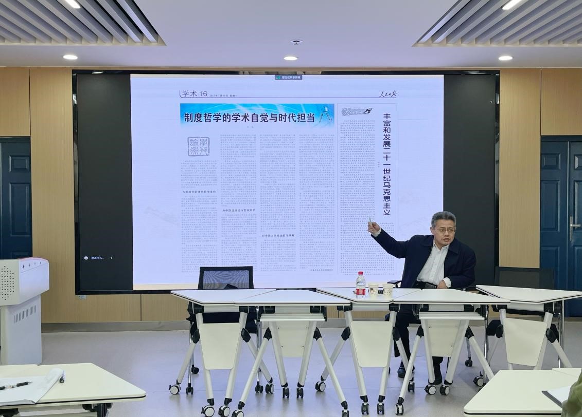 师生带来了一场题为“制度哲学的理论建构”的精彩报告。讲座由学院副院长涂江波教授主持,学院部分教师、全体研究生聆听了此次学术报告。