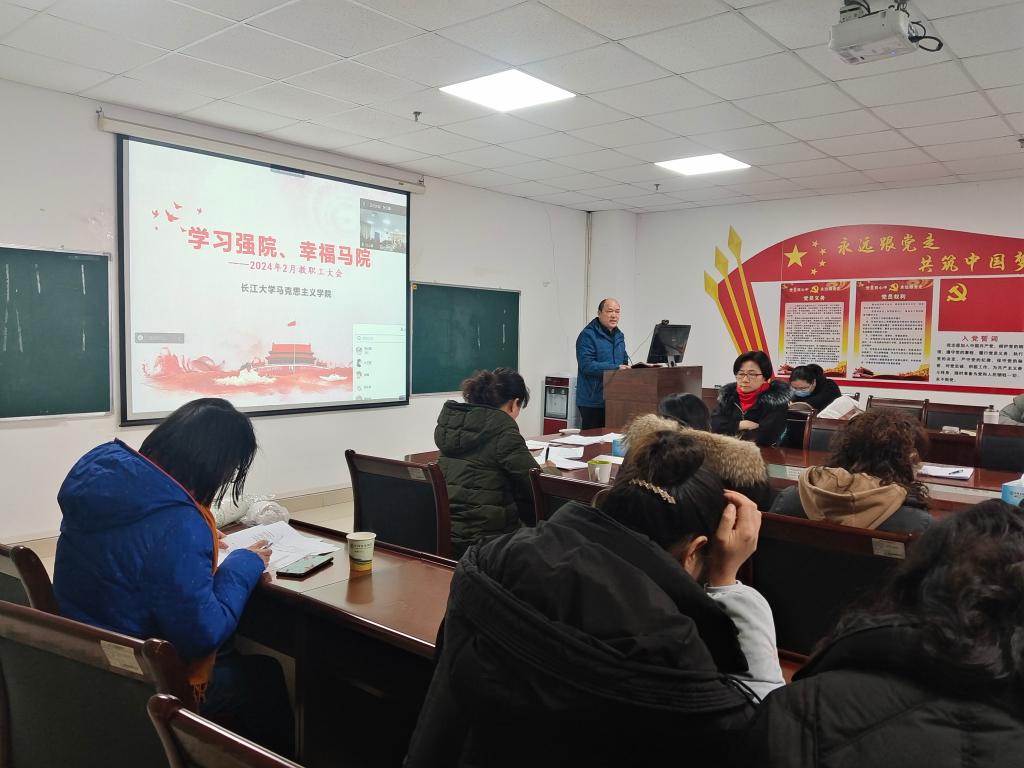 于2月24日下午在文科楼A区1004室召开全院教职工大会,会议由院长姜学勤主持。