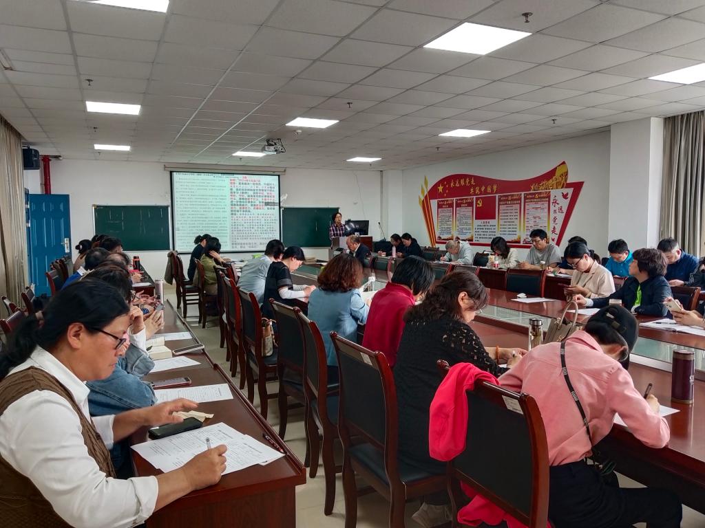 在文科楼1104室召开4月份教职工大会,专题部署党纪学习教育工作。会议由院长姜学勤主持。