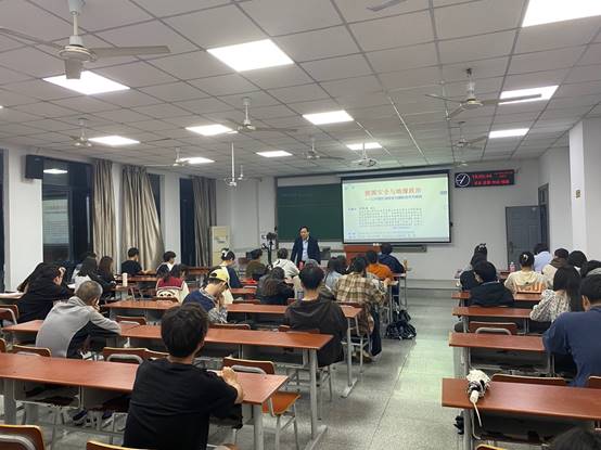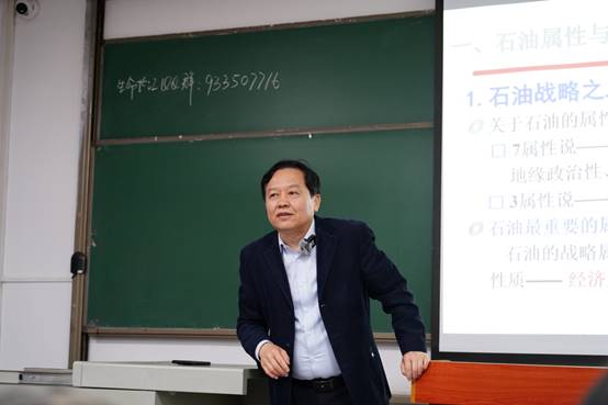 教授舒先林走上讲台,激情开讲第三讲:能源安全与地缘政治。