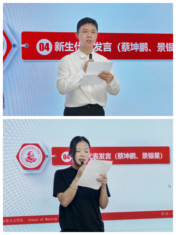 作为新生代表,2024级学硕蔡坤鹏、专硕景银星一致表示,将积极与导师交流,携手并进,共同书写研究生生涯新的篇章。