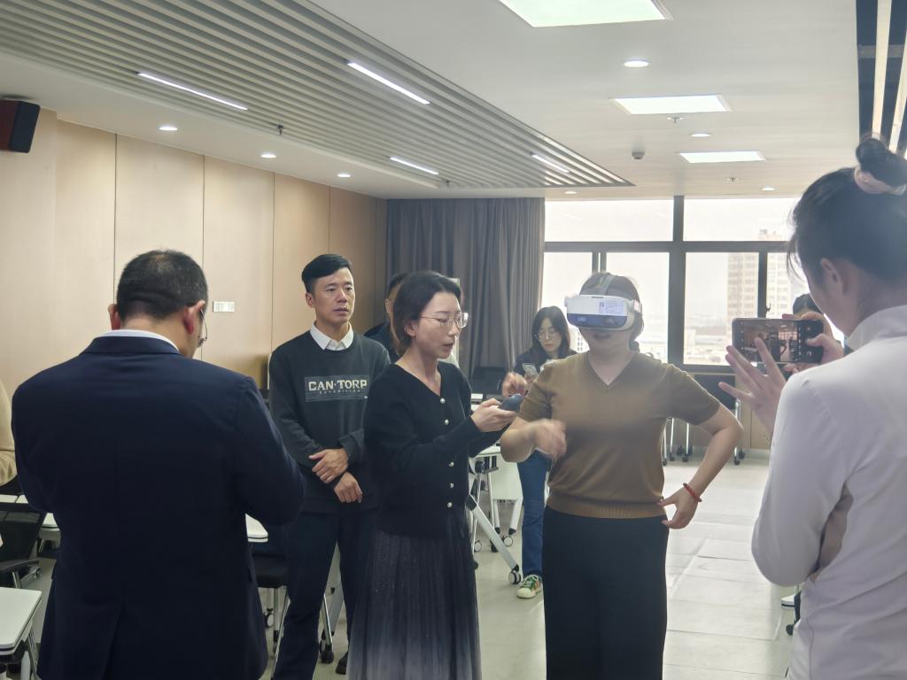 VR实验室的建造、使用、设备管理及后期运营等多个方面进行了详细介绍,湖南工程学院的几位老师也亲身体验了VR眼镜等先进设备并给出了一致的好评。