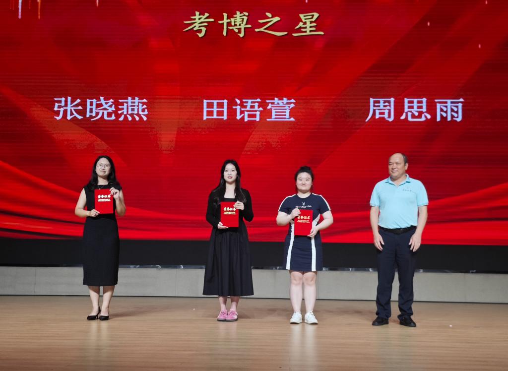 副院长涂江波宣读表彰文件后,黄龙、该院党委副书记汤慧珍、院长姜学勤为2025年成功考取硕士及博士研究生的优秀学子颁发荣誉证书。