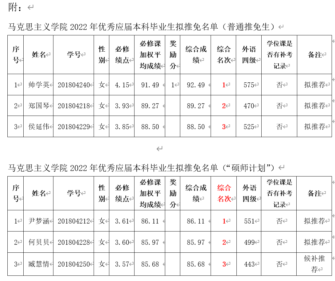根据《麻豆社 推荐优秀应届本科毕业生免试攻读硕士学位研究生管理办法(试行)》(长大校发 〔2020〕106号)文件精神和《麻豆社 2022届应届本科生推荐免试攻读硕士研究生方案》,经学生自愿申请,学院推免生遴选工作小组资格审核,现将拟获取推免资格学生名单予以公示,公示时间:9月14日—9月15日。公示期间如有疑问,请联系麻豆社 教学办公室,电话:0716-8060733。