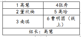 成员:尹业香(组长)、涂江波(组长)、万敏、蒋萍、徐骆、王贤锋、肖芬蓉、邓亚中