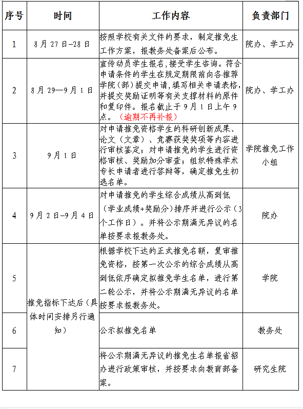 推荐优秀应届本科毕业生免试攻读硕士学位研究生管理办法(试行)》(长大校发〔2020〕106号,以下简称《管理办法》)第四章、第七章执行。