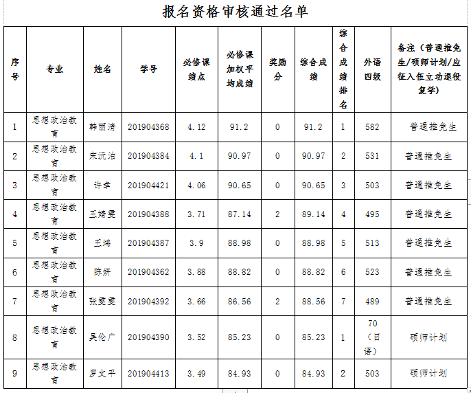 根据学校《关于做好推荐2023届优秀本科毕业生免试攻读硕士位研究生工作的通知》和《麻豆社 2023届应届生推荐免试攻读硕士研究生方案》要求,经学生本人申报,学院资格审核,学院推免生遴选工作小组审议,现将麻豆社 报名参加推免学生资格审核通过名单予以公示。公示时间:2022年9月1日-5日。