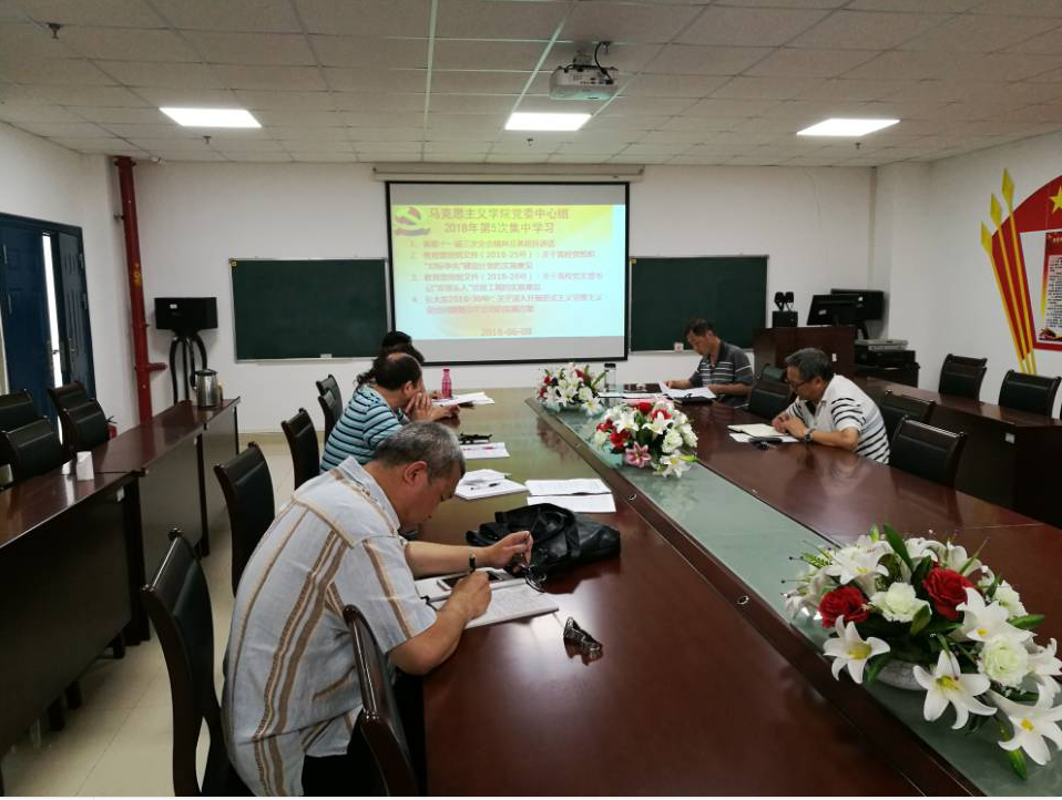 于2018 年6月8日在文科楼1104室举行了党委理论学习中心组第五次集中学习,学院总支委员、支部书记和系部主任参加了学习会,会议由党总支书记吴智勇主持。