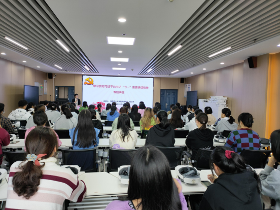 党委书记刘小燕在文科楼1008室作学习贯彻习近平总书记“七一”重要讲话精神专题党课。