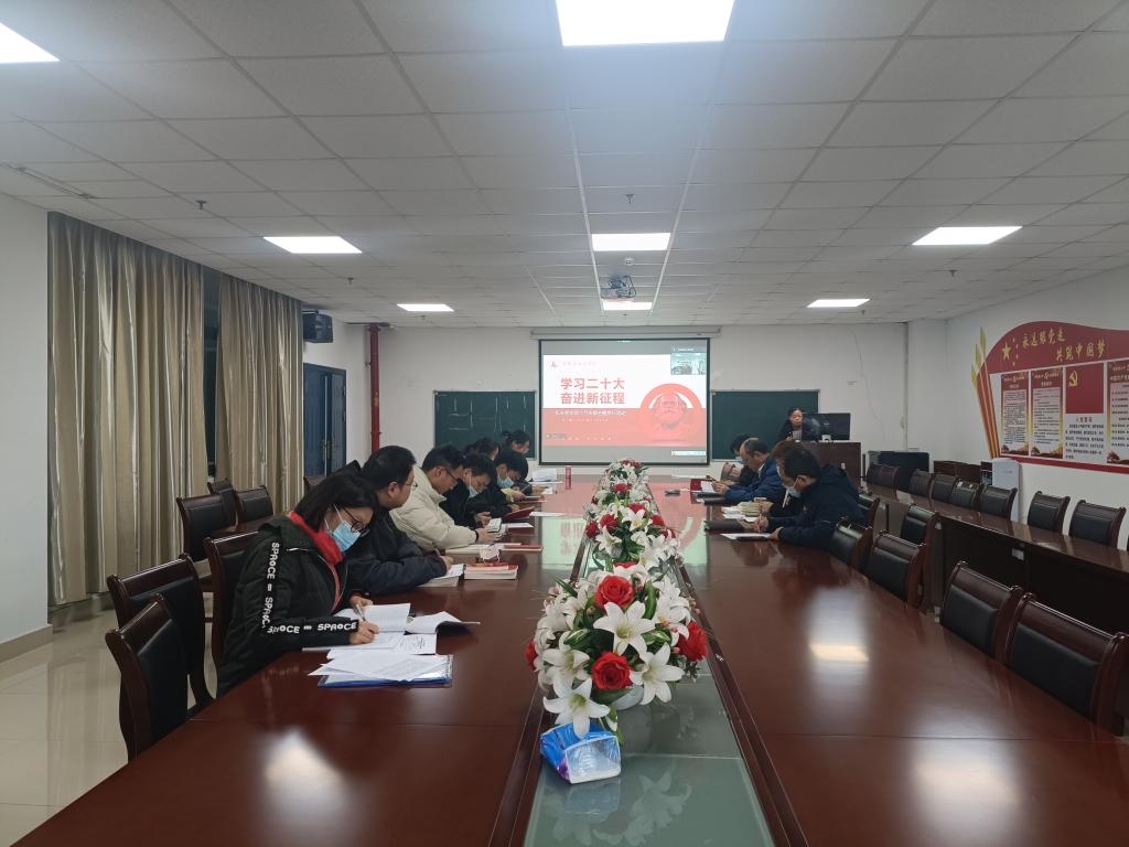 机关党支部在文科楼1104会议室开展了以“学习二十大,奋进新征程”为主题的党日观摩活动。参加此次会议人员为机关党支部全体成员、各党支部书记及支委,武汉校区支部书记和支委参加了线上会议。