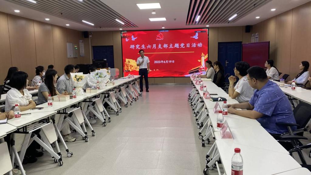 研究生党支部在文科楼1008室举行6月份示范支部主题党日活动。学院党委书记刘小燕、各支部书记及支委到场观摩,本次活动由研究生党支部书记李敏主持。