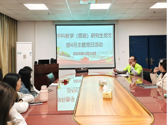 (通讯员 夏丹)为深入开展树立和践行正确政绩观学习教育,强化党员理论武装与使命担当。 4月24日,学科教学(思政)研究生党支部在文科楼1102室开展四月主题党日活动,全体党员及入党积极分子以线上线下相结合的方式参会。