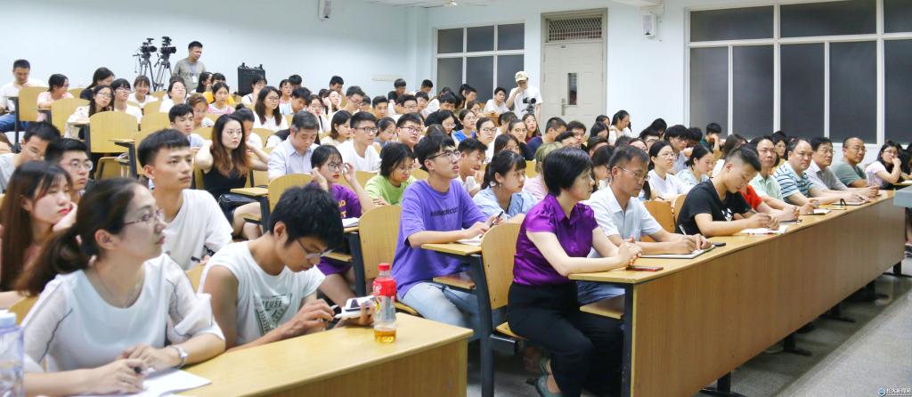 新闻网讯(学生记者 高欣/文 夏春秋/摄)6月11日晚6时许,13教A203教室早已座无虚席,百余名学生齐聚于此,满怀期待地迎接本学期《生命长江》课程的最后一讲。“今天我们将在前九讲的基础上,用‘赋’的文体说长江。”晚7时,校党委书记朱业宏走上讲台,激情开讲《生命长江》第十讲:长江赋。