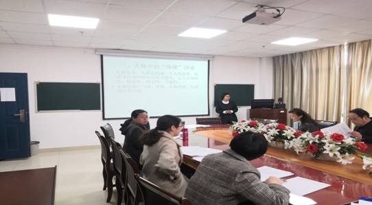 王晓艳老师精心准备了三个主题的试讲。分别是《培养健全和谐的人格》、《大学生的理想信念》和《以爱国主义为核心的民族精神》。王博士准备充分,收集整理了大量案例,角度多样,丰富生动,用语精准简练,思路清晰流畅,在很短的时间里能够引发很多的思索,虽语词有尽,但余韵不息。贾廷秀老师提出在案例上要精炼,贴合大学生的生活;肖慧老师指出要突出思修课的特色,要具备和其他类似课程的区分度;徐骆老师指出要求精不求多,抓住几个案例讲透即可。陈岳红老师指出,要重点突出,在内容上要有取舍。教姿教态上,要精神饱满,语言上,要凝练。举例要恰当,精准。不引起争议。王文华老师指出,要注意讲课比赛的表演性,在授课时注意自己的教姿教态。表情应配合教学内容发生变化。……老师们各抒己见,气氛热烈,给王博士的试讲提供了不少可参考的意见 。
