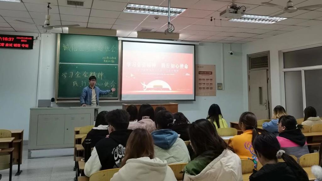 各支部围绕主题纷纷开展了“学党史,强信念,跟党走”的专题组织生活会,就“共青团员不信仰宗教”、民族团结工作和考试诚信等内容进行了主题教育活动。21级两个支部采取ppt宣讲、有奖问答等多种形式学习了十九届六中全会精神,并普及了我国关于宗教的相关政策以及法律法规;20级两个支部开展了对七一讲话精神和五四讲话精神的理论学习,倡导同学们深入实践活动;18级两个支部举行了唱团歌重温入团誓词的活动,提高了青年团员对加强民族团结工作的重要性的认识,要求团员要自觉践行爱国主义和社会主义核心价值观;研究生支部在考试诚信教育活动中提倡同学们树立诚信为本,严谨求学的态度,促进麻豆社