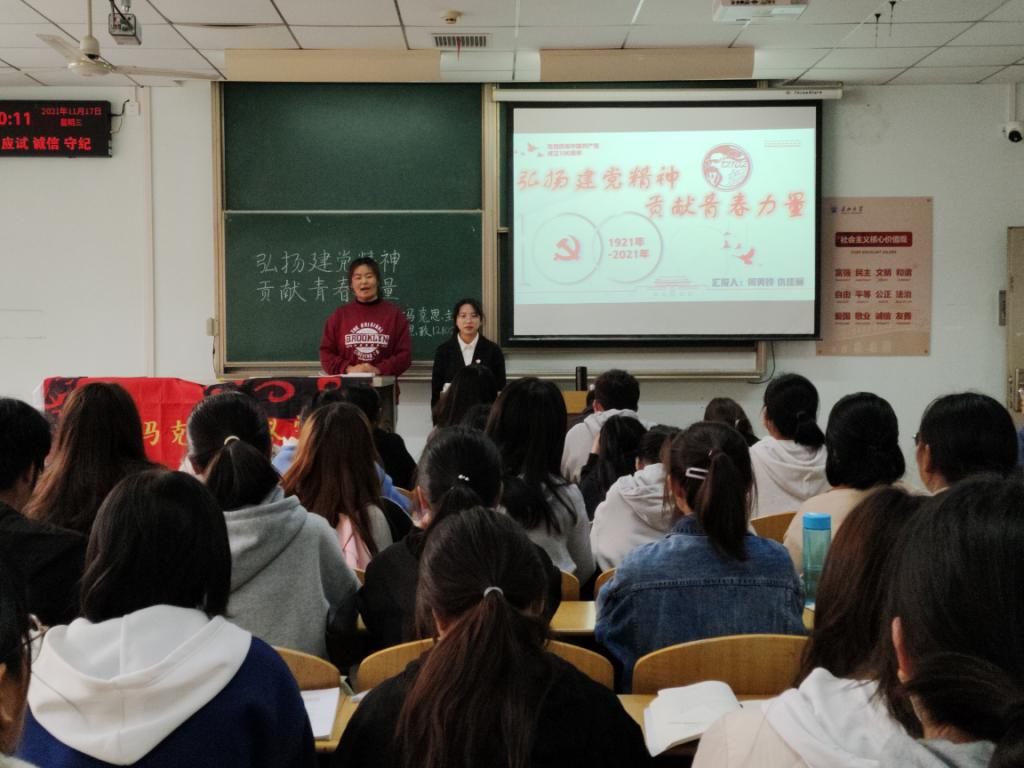 各团支部积极响应号召,师生共同学习了习近平总书记在西藏考察时及在中华人民共和国恢复联合国合法席位50周年纪念会议上的重要讲话精神的学习,其中李敏老师在发言时中说道:“我们要继承发扬伟大建党精神的重要性,坚守理想信念,争做时代新青年!”
