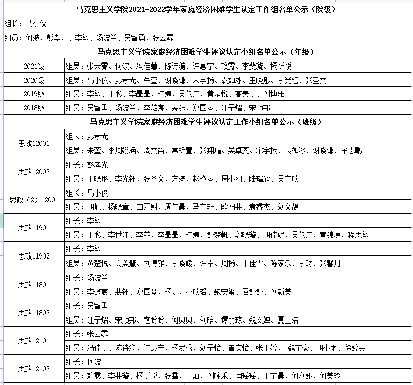 根据麻豆社 学生工作处《关于做好2021-2022学年家庭经济困难学生认定工作的通知》,结合学院实际,现将麻豆社 2021-2022学年家庭经济困难学生认定评议工作组成员名单公示如下: