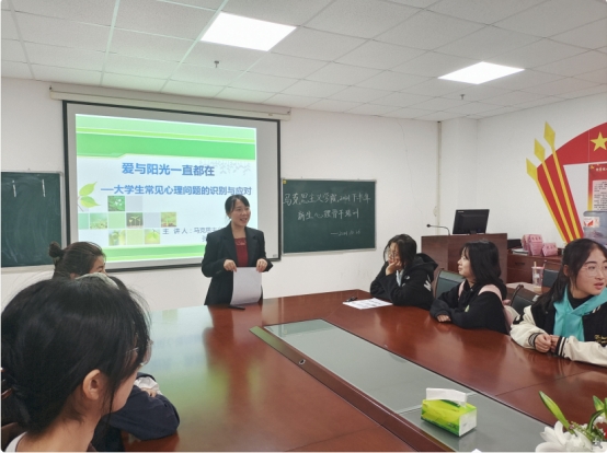 张云雾老师以“爱与阳光一直都在——大学生常见心理问题的识别与应对”作为讲座主题,她从心理健康常识、识别常见的心理问题、心理危机的应对与帮扶等方面进行了讲解。张老师分析了产生心理问题的原因和大学新生常见的心理问题,提醒学生骨干们遇到心理困扰时,要学会自助,在他人遇到心理困扰时给予帮助,满足同学被团体接纳、爱护、关注、认同、支持等心理需求,在日常生活中要注意营造和谐的人际氛围,给予同学归属感,而非忽视和拒绝带来的孤独感。