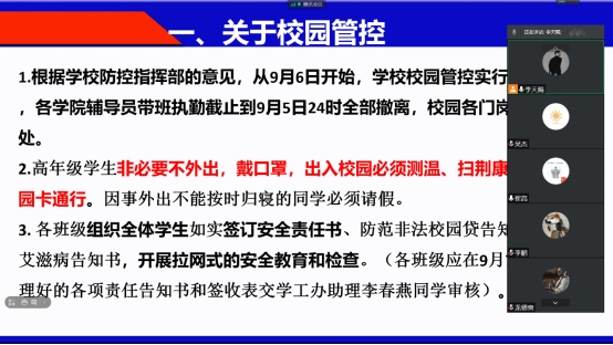本、研学生均以班级为单位通过腾讯会议召开了2021年秋季学期高年级学生疫情防控主题班会。
