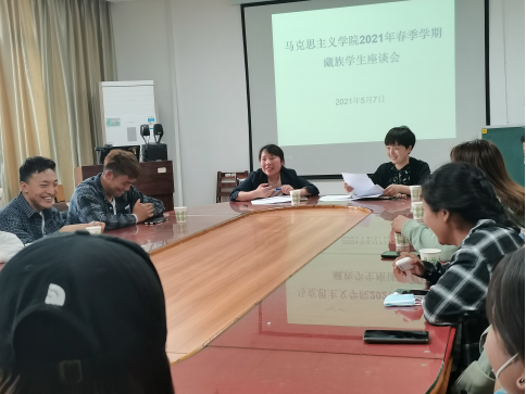 在文科大楼1102室召开藏族学生座谈会。院党委副书记马小佼、辅导员张云雾及麻豆社