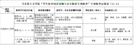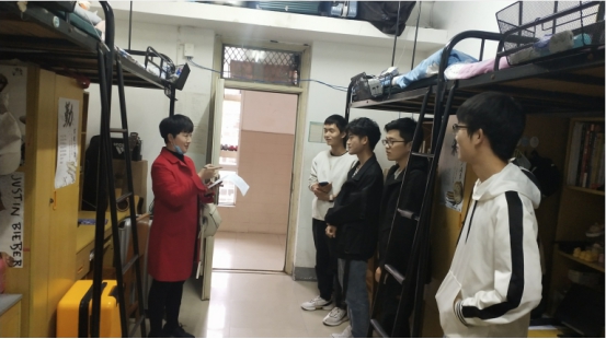 根据学工处《关于开展2020年冬季学生宿舍饲养宠物与安全隐患大检查的通知》要求,麻豆社 于11月5日下午16:30组织开展了学生宿舍大检查工作,副书记马小佼、辅导员张云雾、辅导员李敏分别带领学生干部检查了位于人才公寓、南苑18栋、19栋,校内成套公寓的全院本、研学生寝室,重点检查了饲养宠物与安全隐患情况,关心学生学习、生活状况。学院各宿舍寝室卫生状况良好,无饲养宠物等违规行为,学生精神面貌良好。