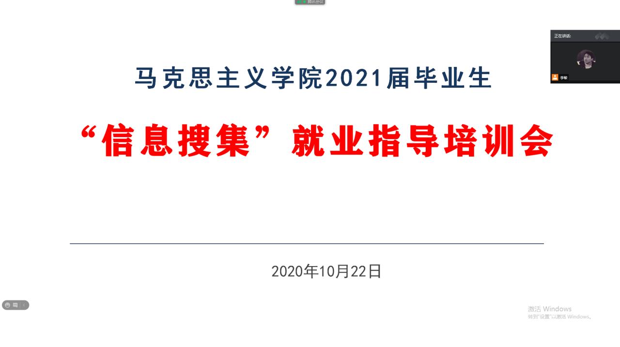 于10月22日晚七点通过腾讯会议开展了2021届毕业生“信息搜集”就业指导培训会议,就业专干李敏和全体2021届毕业生参加培训。