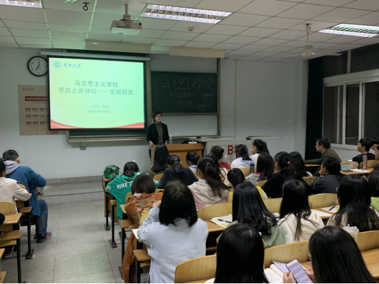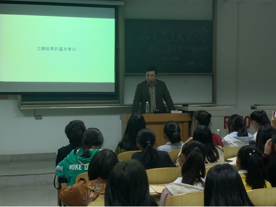 讲坛伊始,马小佼副书记向大家介绍主讲人徐骆副院长,并且讲述开展本次讲坛的目的与意义。徐骆副院长以生动幽默的形式,从“照着讲、接着讲”、文献去哪里找、如何使用学术资源三个角度,讲述了为什么要查阅文献、怎么查文献、怎么使用文献。学而不思则罔,思而不学则殆,徐骆副院长告诫学生要多看多想多写,同时也给同学们启发了思想政治教育专业的写作方向。