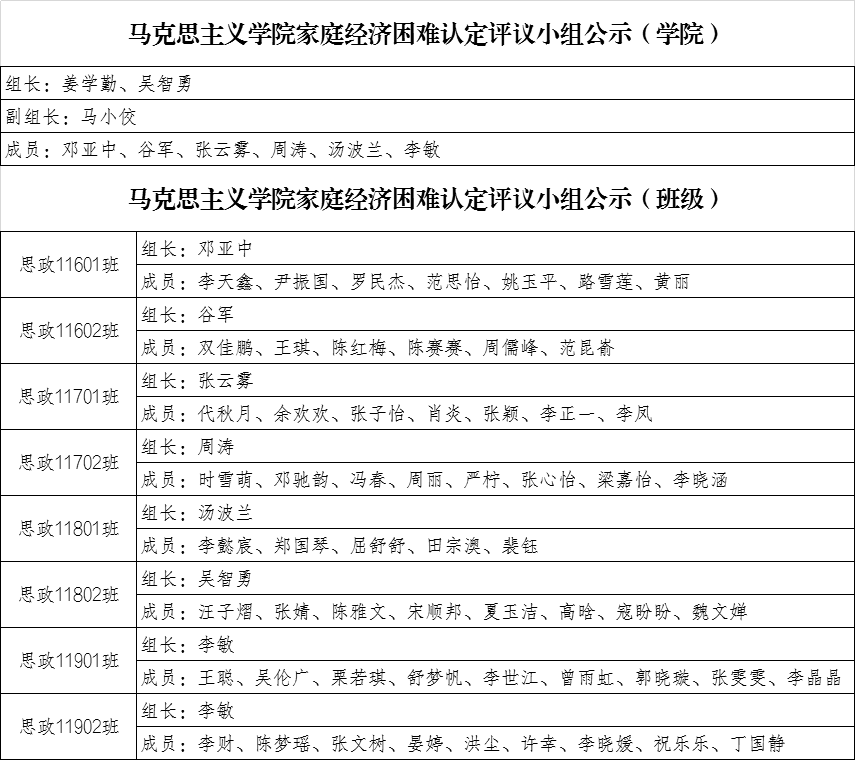 【信息公示】麻豆社 家庭经济困难认定评议小组名单