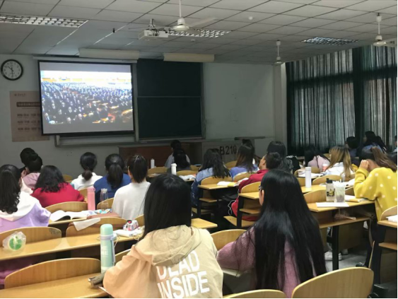 组织大一和大三学生在文科大楼1125集中观看了纪念五四运动100周年大会直播,学院党委副书记马小佼也参与了直播观看。