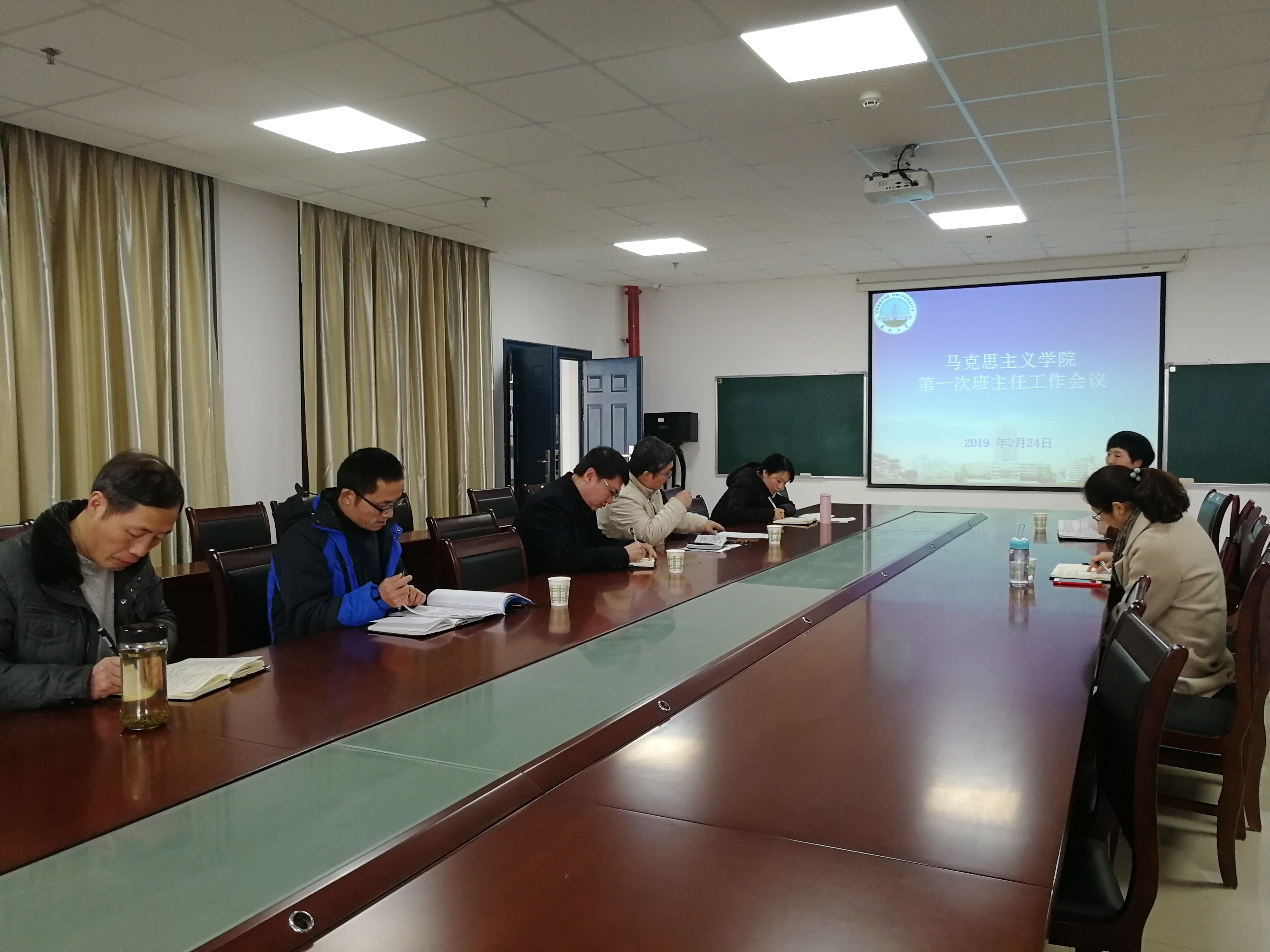 本次会议的第一项由马书记向各位班主任传达了2019年第二次学生工作例会的相关会议精神,宣讲了2019年重点学生工作以及近期开学工作的相关安排。会议第二项由学工办辅导员张云雾老师向各位班主任讲解了近期学院的学生工作安排和需要各班主任协助开展的相关工作以及本学期将要开展的重点学生工作。