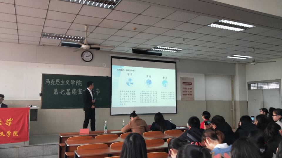 兼职辅导员饶静老师。活动旨在增强同学们的自主生活意识,提高同学们的生活质量,调动同学们的积极性,促进寝室内部团结,和谐,增强集体荣誉感,调动同学们的活力和激情,使寝室成为同学们心灵的栖息地,疲惫的避风港,真正让寝室成为同学们学习生活中最重要的阵地。本次评选标准是每周卫生大检查评分以及本次答辩得分综合评选出一个一等奖寝室,四个二等奖寝室,七个三等奖寝室,一个最佳人气奖分别颁发证书和奖品。
