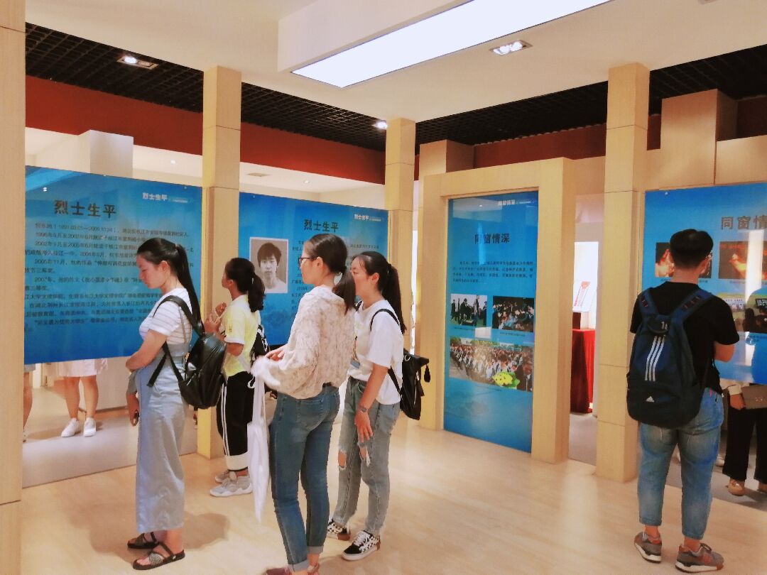 “他们纵身一跃,划出了人生最壮丽的弧线,他们奋力一举,绽放出生命最高尚的光芒。他们用青春传承了见义勇为,用无畏谱写了一曲英雄的赞歌。”进入馆内参观之后,同学们因这颁奖词而生发出庄严肃穆的敬畏之感,大家自觉地安静参观学习,听着纪念馆中播放的英雄事迹,看着一幕幕呈现在眼前的图文,颇受感动。