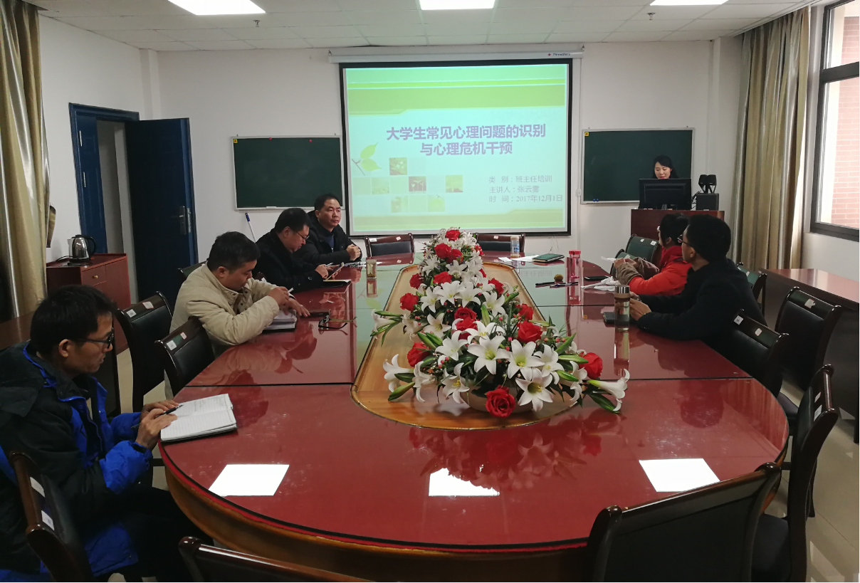 于12月1日开展了本年度第二次班主任工作培训,由心理专干张云雾老师为班主任们讲解大学生常见的心理问题及危机干预。
