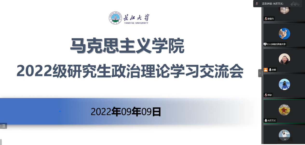 通过腾讯会议召开2022级研究生政治理论学习交流会。学院党委副书记马小佼、2022级全体研究生参加会议,辅导员李敏主持会议。
