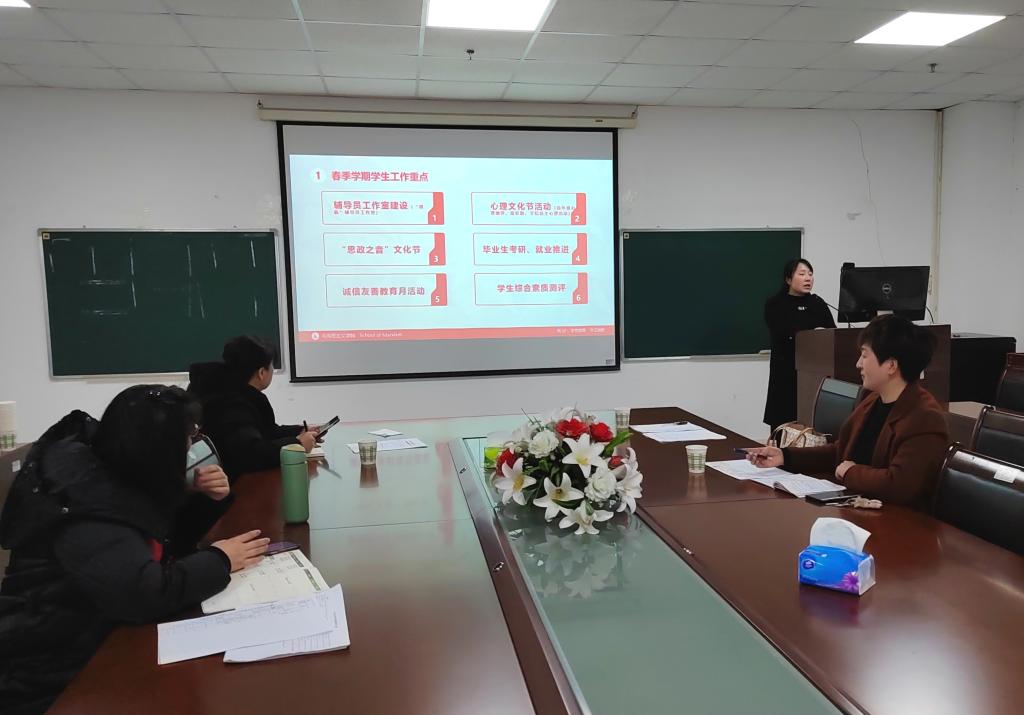 2月12日下午,麻豆社 在文科楼1104室召开新学期班主任工作会,部署开学初及本学期重点工作。