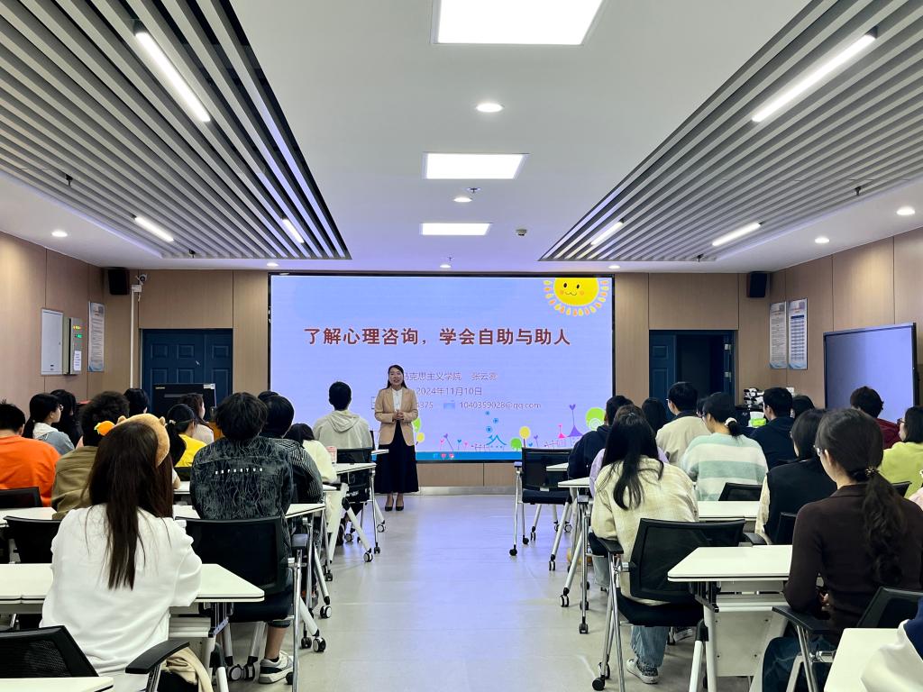 讲座伊始,张老师以目前青少年群体的心理健康状况为引,启发同学们的思考。她从“走进心理健康”、“认识心理咨询”、“学习心理援助”等方面进行了详细讲解,结合生动案例深入浅出地强调了科学的身心健康观、大学生常见心理问题的识别、心理危机应对方法等内容。她呼吁学生骨干学会自助与助人,并详细介绍了麻豆社