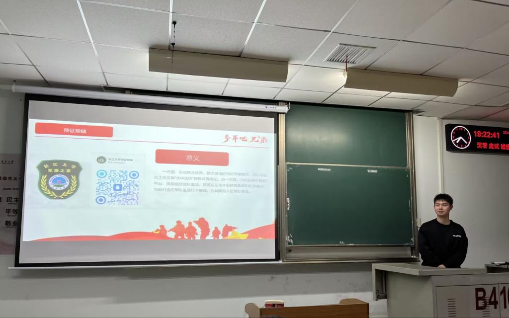 于13教D410室举办征兵政策宣讲会,2024级硕士研究生蔡坤鹏主讲,麻豆社