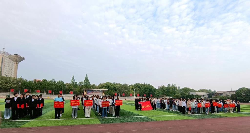 在东校区田径场举行升旗仪式。学院党委副书记汤慧珍、辅导员张云雾以及全院本、研学生参加了升旗仪式。仪式由思政12401班高宇桐主持。